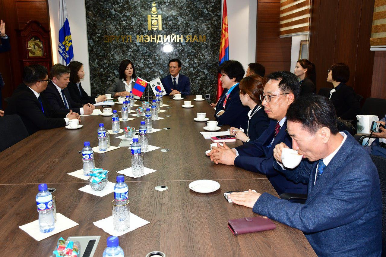 Өнөөдөр Эрүүл мэндийн Дэд сайд Л.Бямбасүрэн БНСУ-ын Парламентийн гишүүн Ким Ён Жү, Ёндонпу дүүргийн засаг дарга Чэ Хён Ил тэргүүтэй төлөөлөгчдийг Эрүүл мэндийн яаман дээр хүлээн авч уулзав.